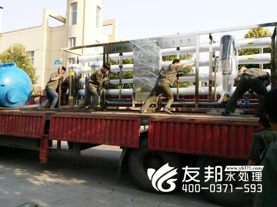 鄭州友邦這套20噸的反滲透純水設(shè)備是通過反滲透膜法來制取純水的裝置。反滲透是一種利用高分子膜進行物質(zhì)分離的過程,可以從水中除去的溶解鹽類及膠體。