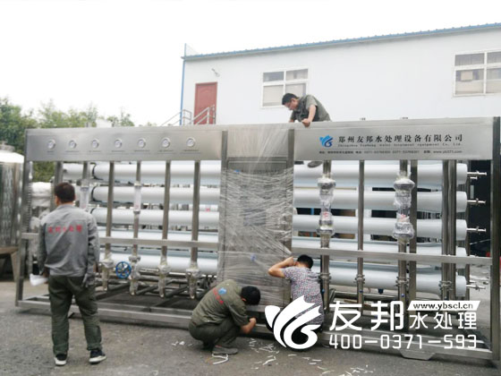 通過鄭州友邦師傅們近一個多月的組裝,電焊,加班生產,這套40噸的反滲透純凈水設備終于竣工在今天就要順利發貨了。
