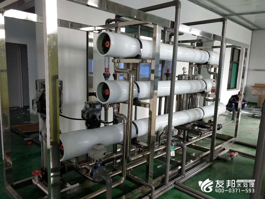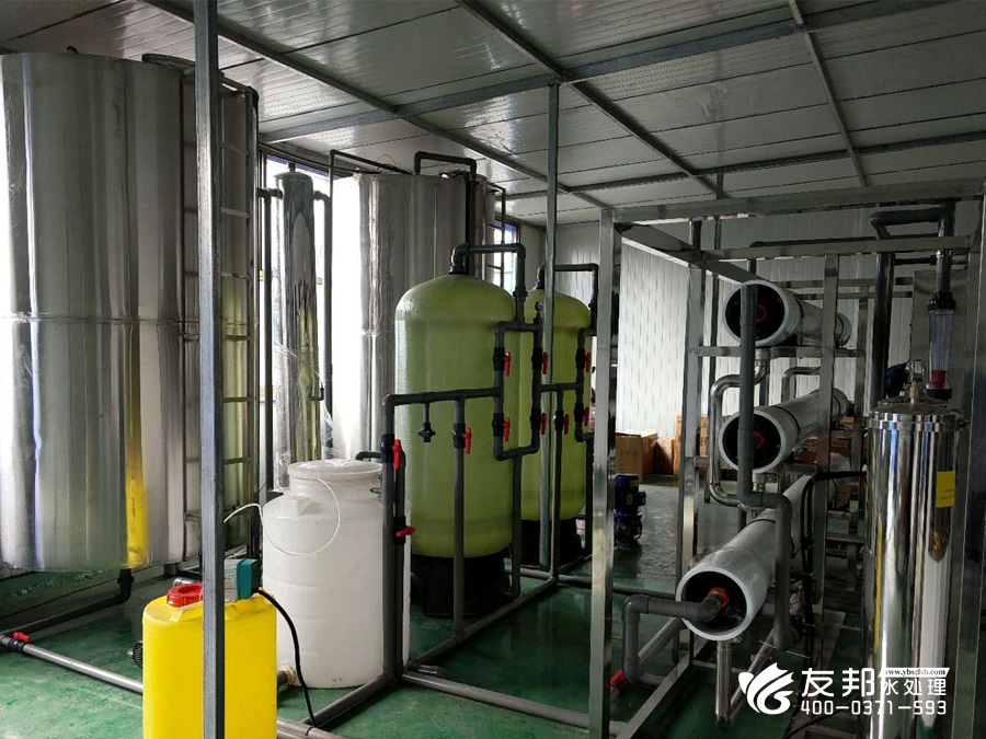 2、預(yù)處理→反滲透→中間水箱→水泵→EDI裝置→純化水箱→純水泵→紫外線殺菌器→拋光混床→0.2或0.5μm精密過濾器→用水對象(≥18MΩ.CM)(最新工藝)