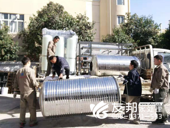 昨天已經立冬,早上起來寒風乍起。但這都不影響友邦員工堅持發貨。這是一套發往三門峽市的5噸純凈水設備。冬天已經來臨客戶們一定要注意設備的維護和保暖技巧。