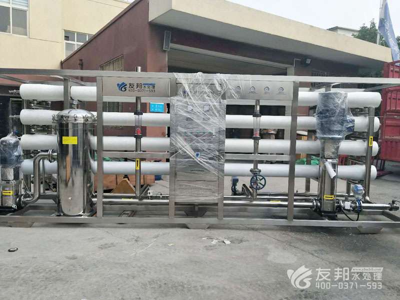 原水→增壓泵(一用一備)→砂過濾器→炭過濾器→硬化器(根據地區不合選用)→精密過濾器→兩頭水箱→RO前水泵→精密過濾器→RO高壓泵→RO反滲透零碎→RO水箱