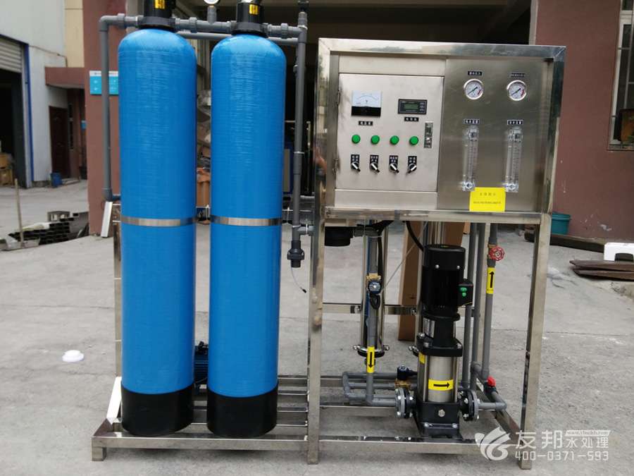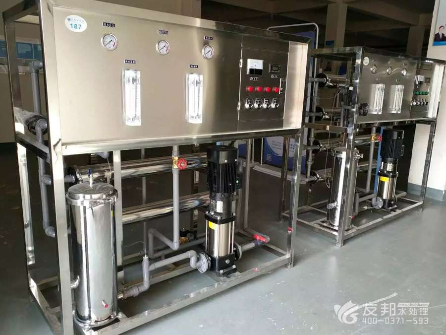 1、原水→原水加壓泵→多介質(zhì)過濾器→活性炭過濾器→阻垢裝置→精密過濾器→一級(jí)反滲透→中間水箱→中間水泵→陰陽離子交換器→純化水箱→純水泵→紫外線殺菌器→微孔過濾器→用水點(diǎn)